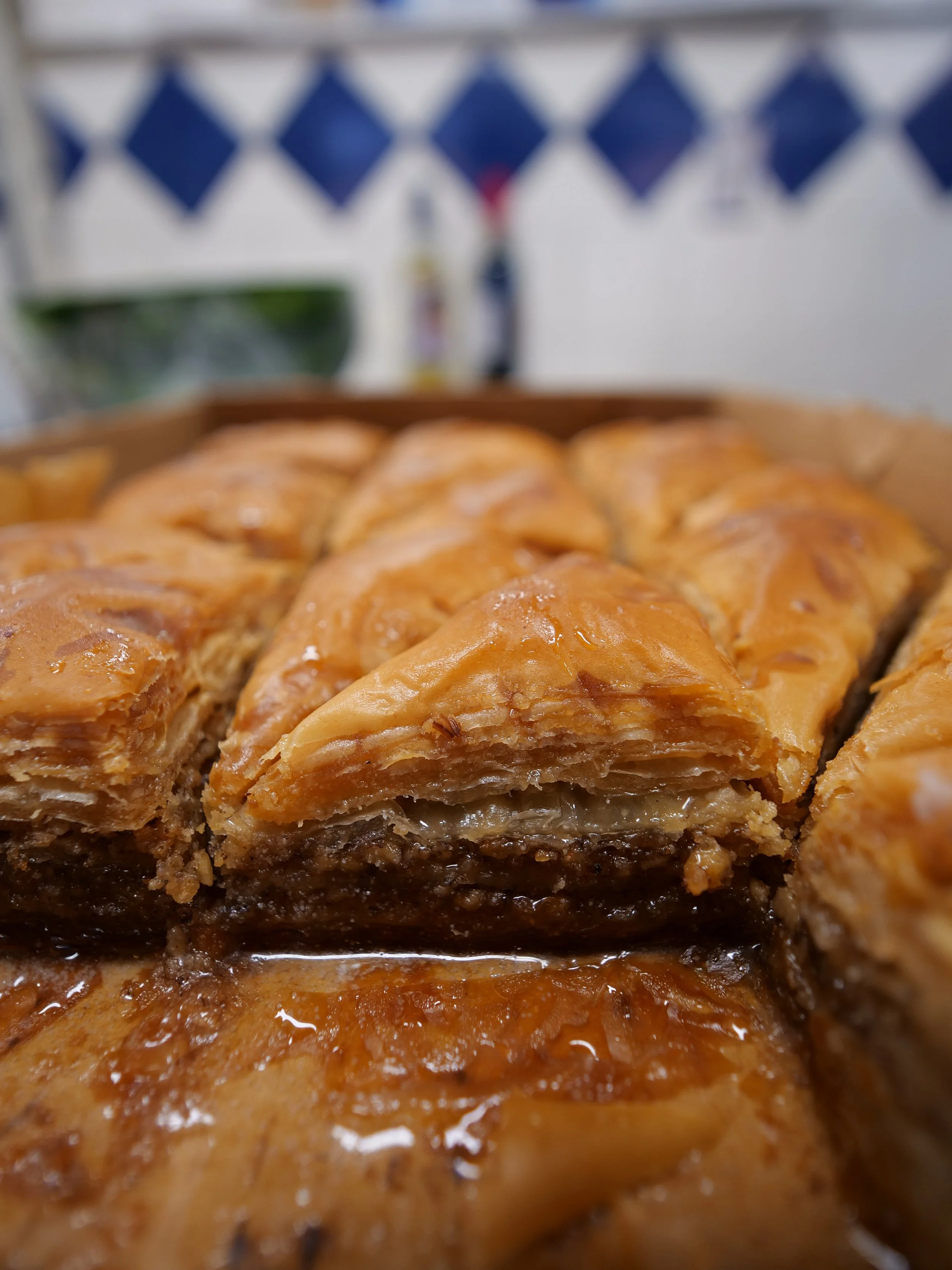 Our pastry case is always full of something sweet—and a little unexpected. We’ve got all the traditional Greek favorites like baklava, kataifi, koulouria, melomakarona, amygdalota, kourabiedes, and kok (yes, even chocolate kok). You’ll also find savory classics like spanakopita and tyropita, plus Italian staples like cannolis and Napoleons, American favorites like key lime pie, and a rotating variety of cheesecakes, limoncello cake, Vesuvius, and seasonal pies. The selection’s always changing, but there’s always something worth taking home.